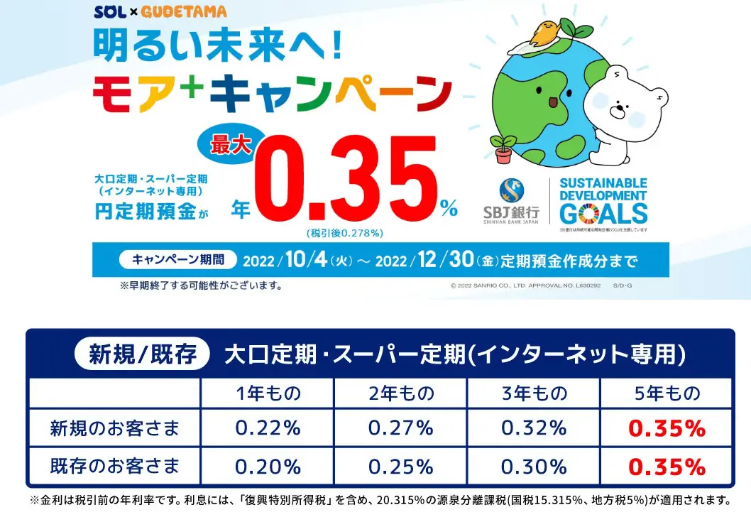 SBJ銀行は2022年10月4日(火)〜2022年12月30日(金)までの期間限定で「お友達紹介キャンペーン」を実施しています。実施期間が短いため、興味のある方はお早めにどうぞ!