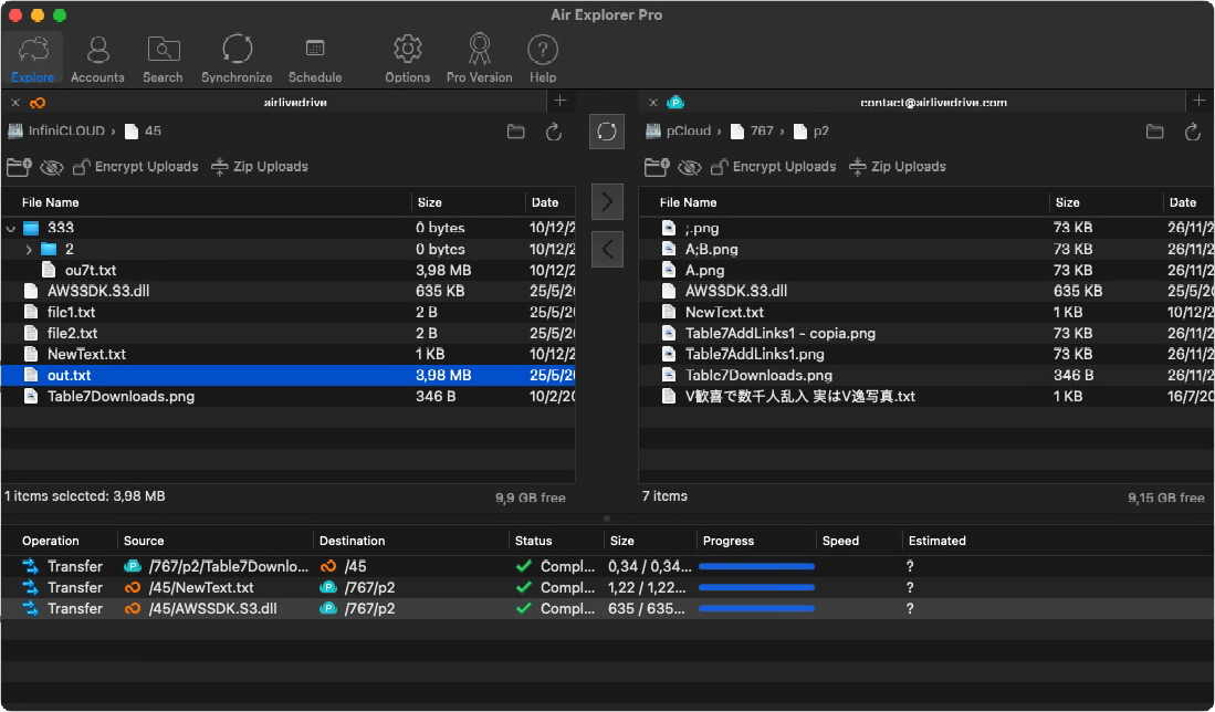 いろいろ試しましたが、今は「Air Explorer」というアプリに落ち着いています。有料版もありますが無料でもふつうに使えています。Mac版もあり、Windows版もあります。
