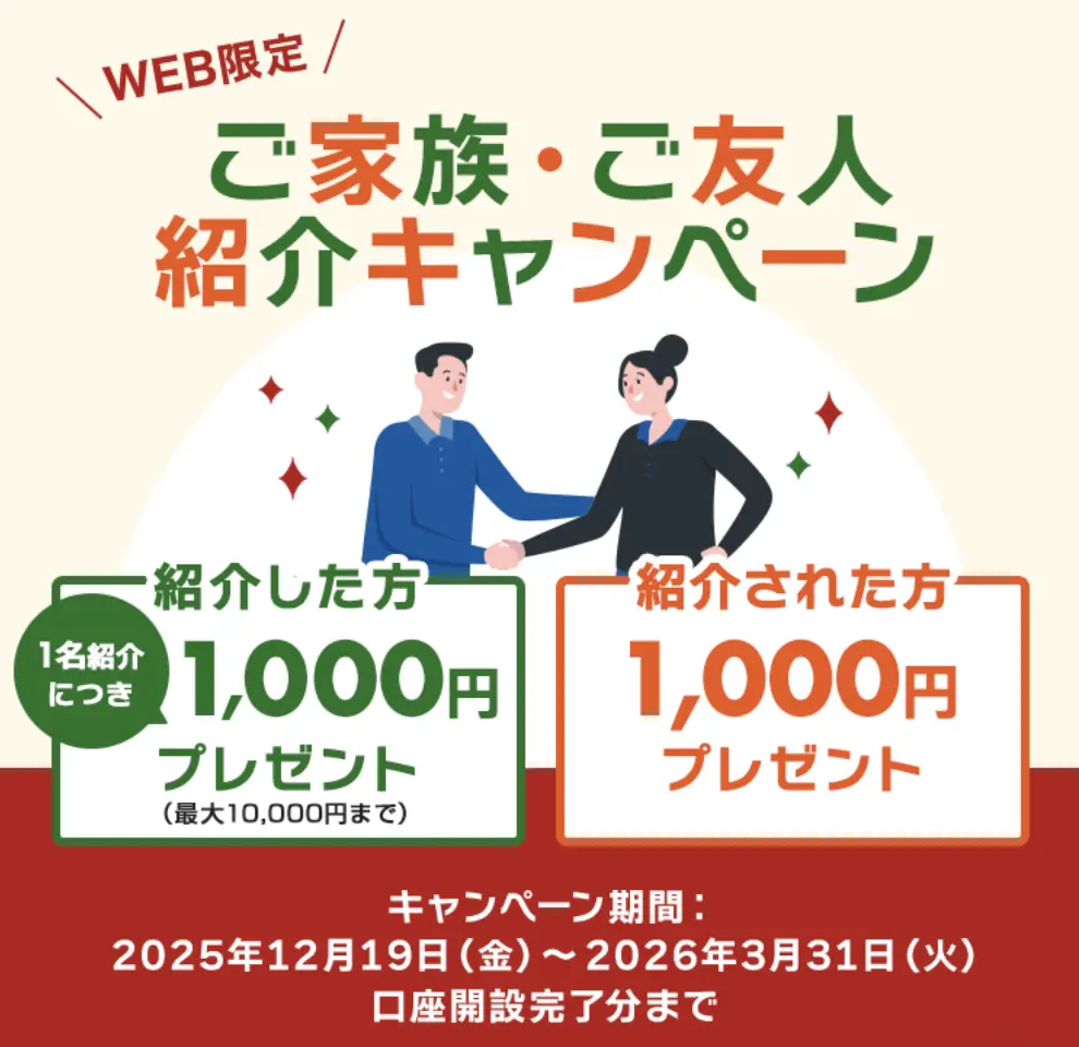 SBI新生銀行では「ご家族・ご友人紹介キャンペーン」を実施中です。カンタンなミッションをクリアするだけで現金1000円もらえます!